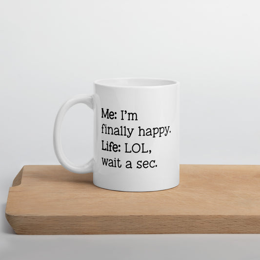 I'm Finally Happy, LOL Wait a Sec White Ceramic Coffee Mug