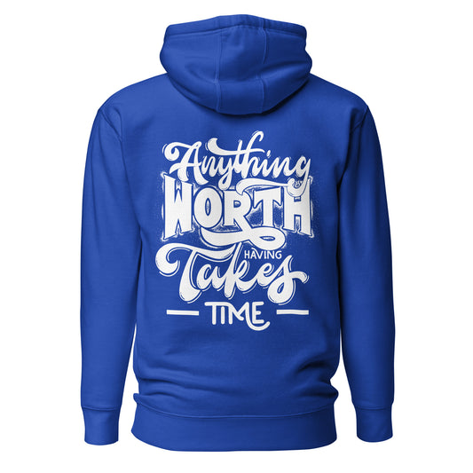 Anything Worth Having Takes Time Quality Cotton Heritage Adult Hoodie