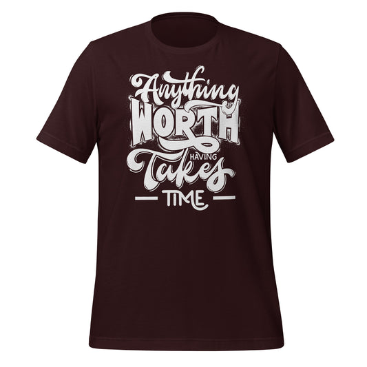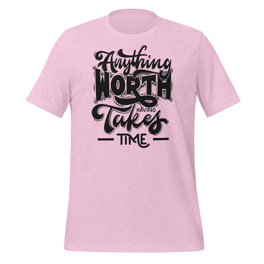 Anything Worth Having Takes Time Quality Cotton Bella Canvas Adult T-Shirt