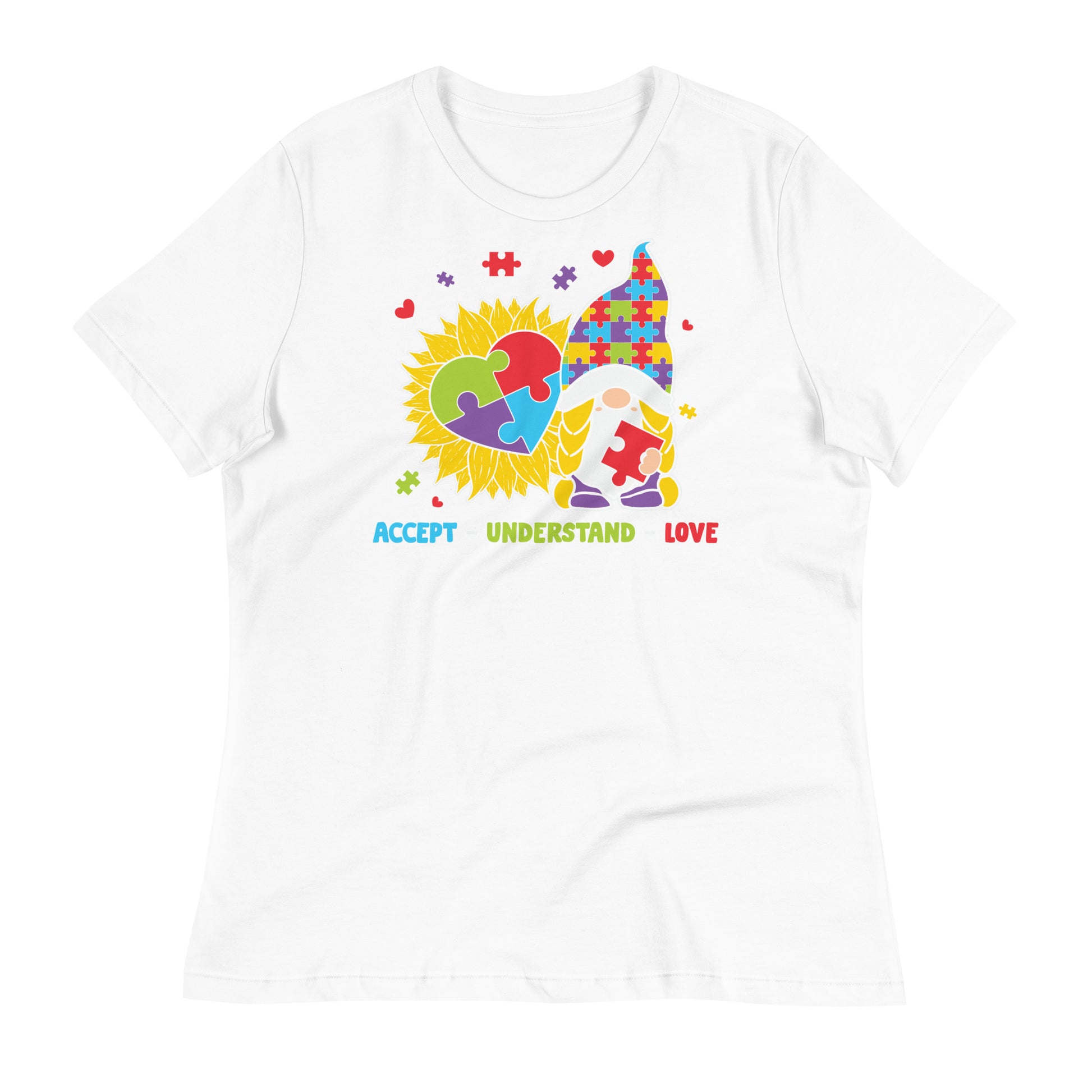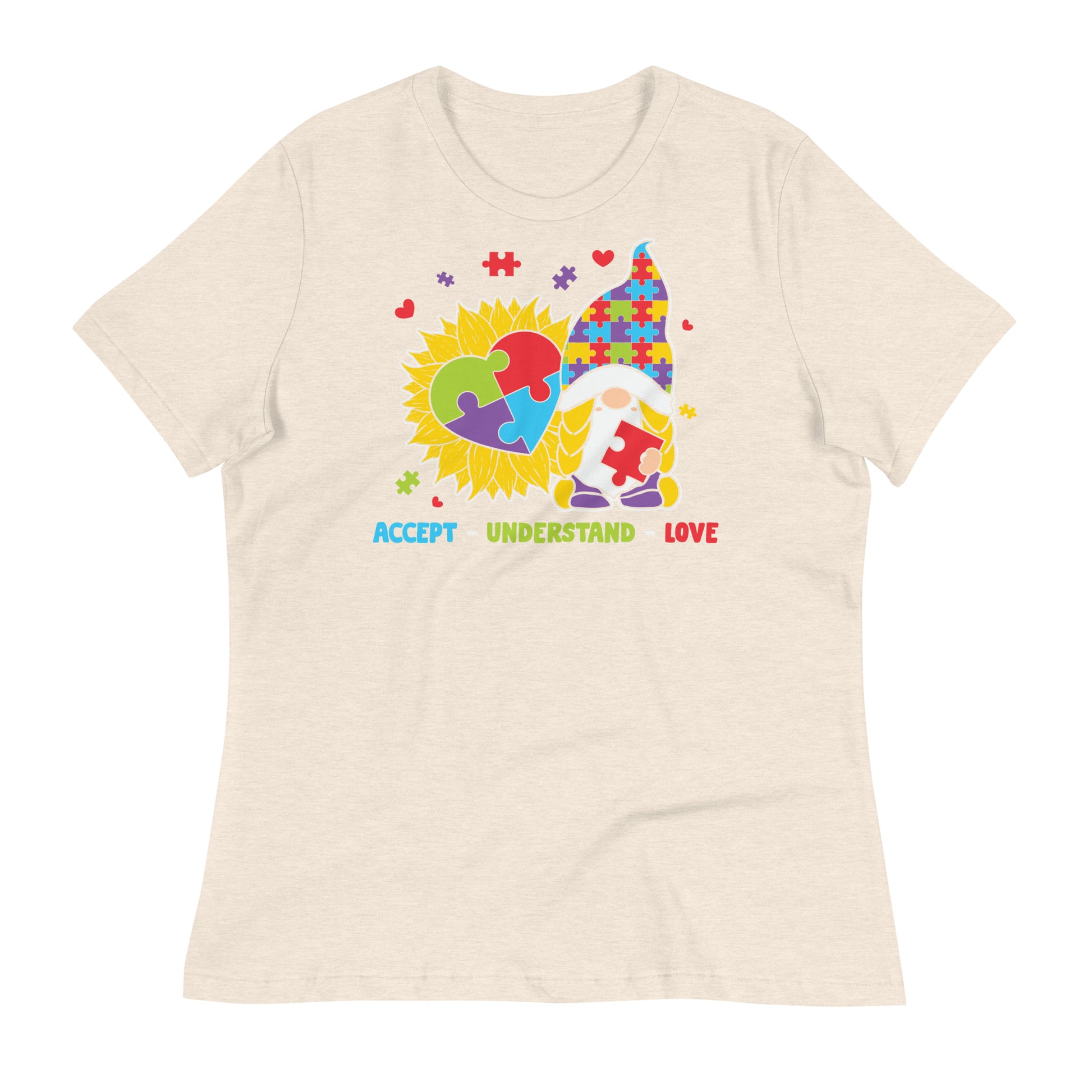 Accept Understand Love Autism Gnome Bella Canvas Relaxed Women's T-Shirt
