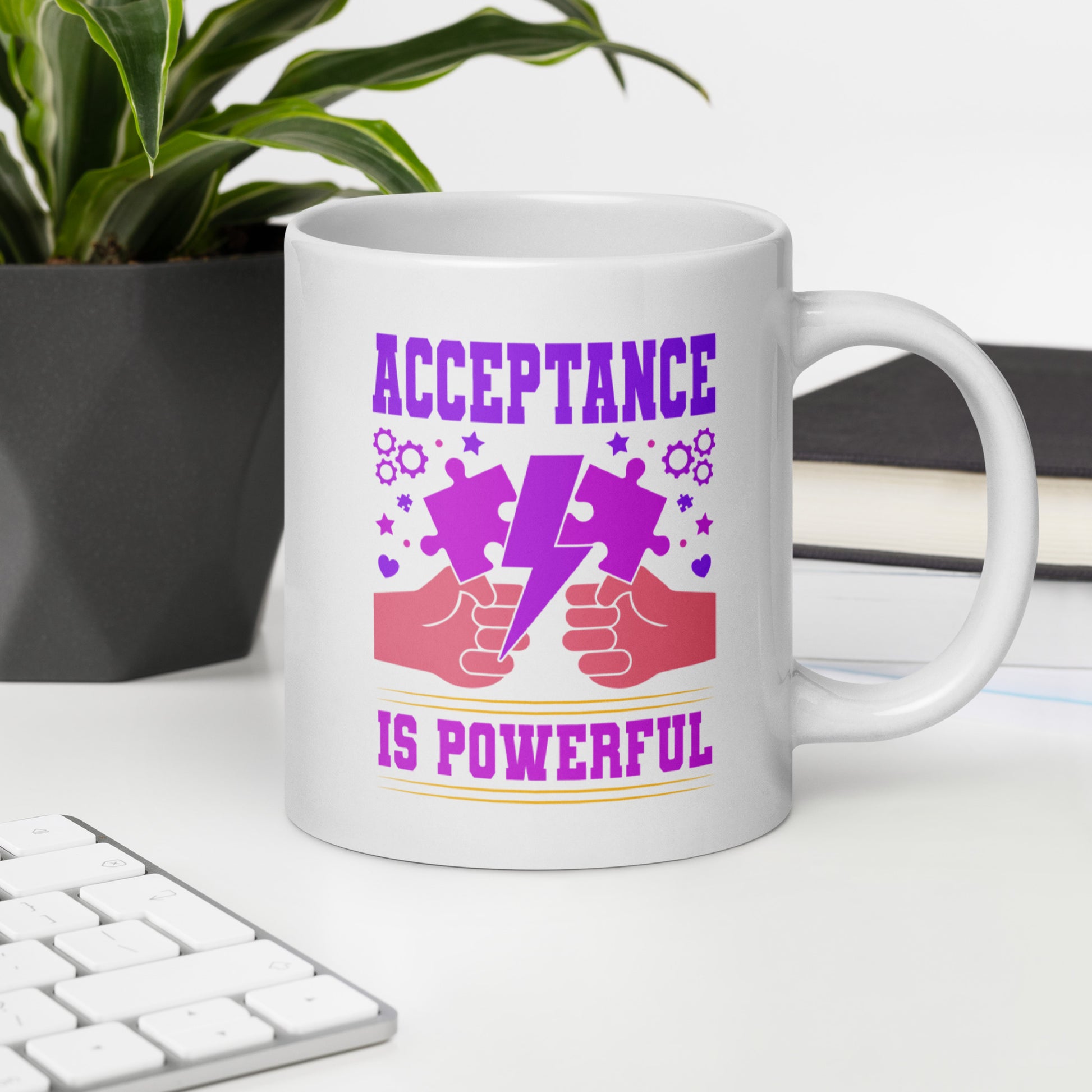 Introducing our Autism Acceptance is Power Ceramic Coffee Mug - the perfect way to start your day with a powerful message. This mug is not just a regular coffee mug, it's a statement of acceptance and empowerment. Designed for those who believe in spreading love and understanding, this mug is a must-have for anyone looking to make a positive impact. Get yours today and show the world that acceptance is power.