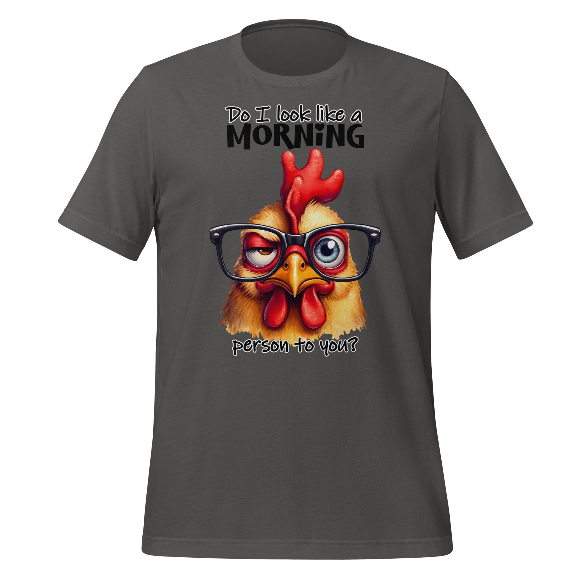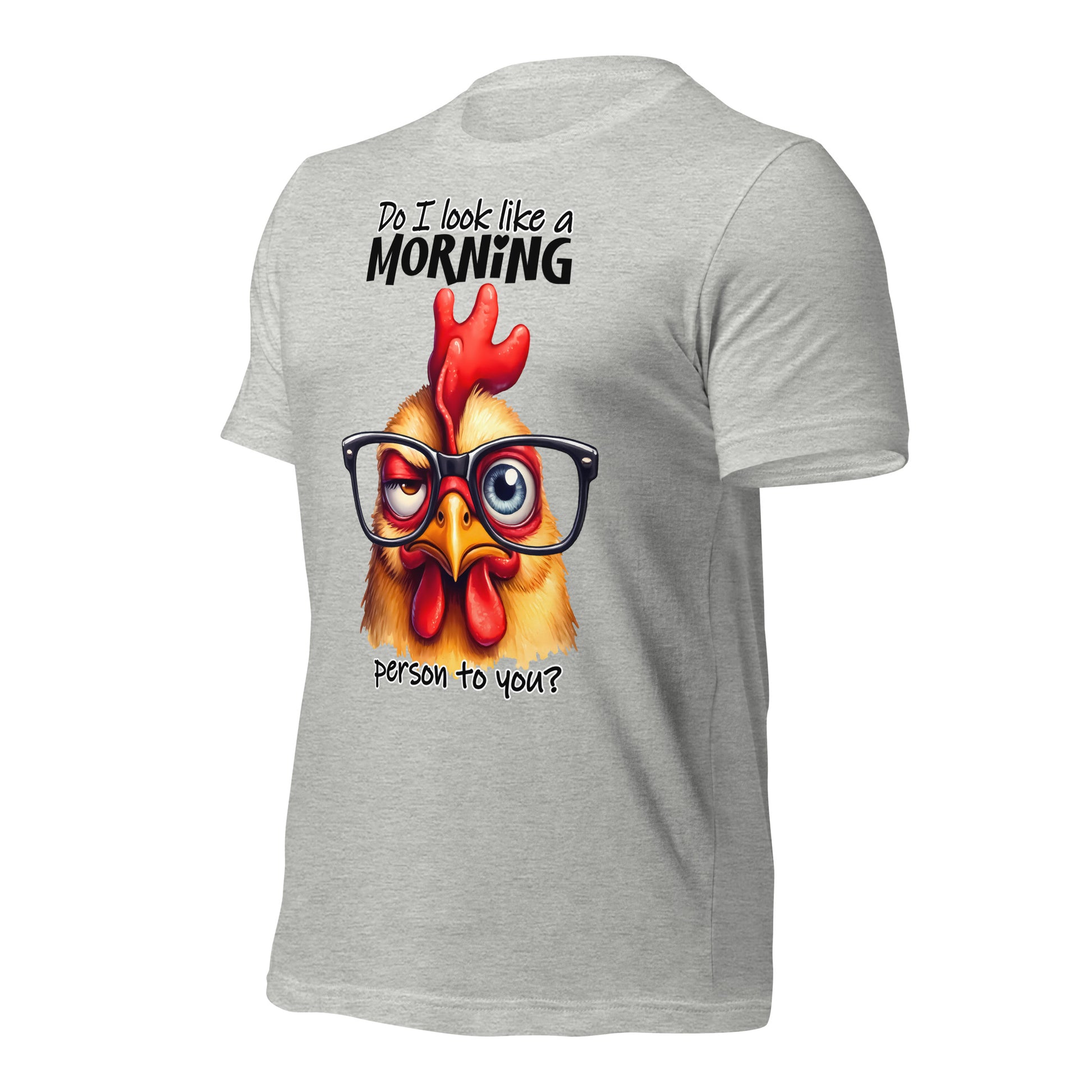 Get ready to show off your sense of humor with this hilarious Bella Canvas adult t-shirt! The "Do I Look Like A Morning Person To You" design featuring a funny chicken is perfect for those who like to start their day with a laugh. Made with high-quality materials, this shirt is comfortable to wear and easy to care for. Whether you're a morning person or not, this shirt is sure to bring a smile to everyone's face. Get yours today and add some fun to your wardrobe!