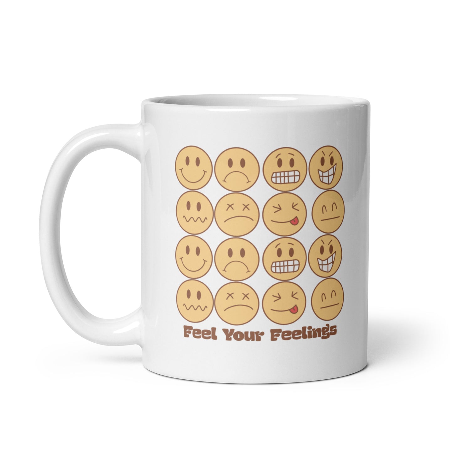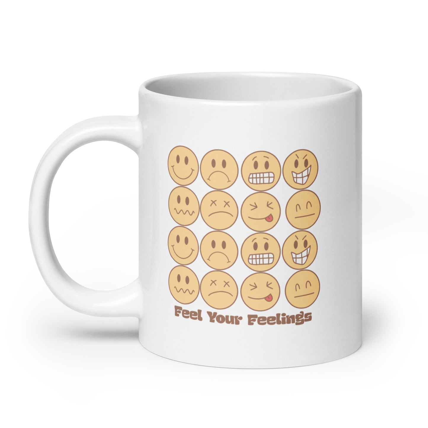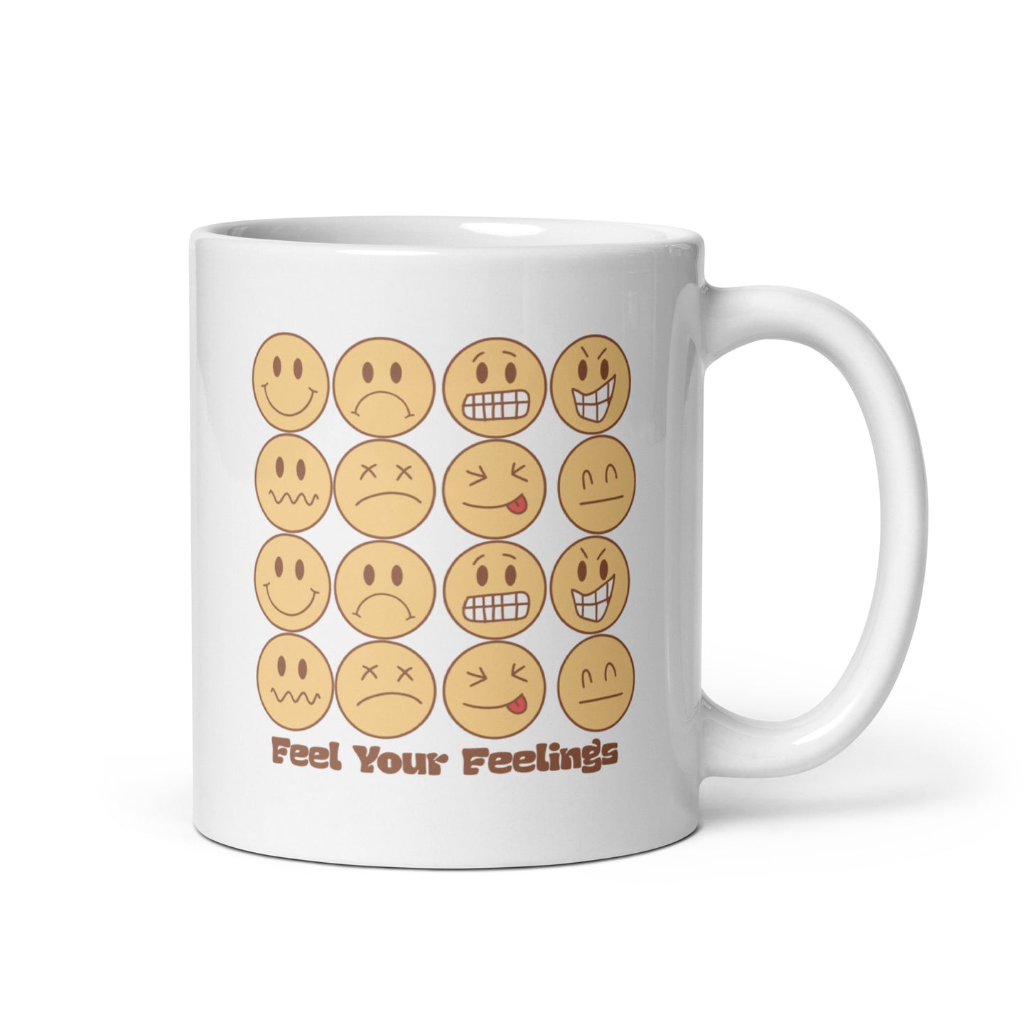Feel Your Feelings Emojis White Ceramic Coffee Mug